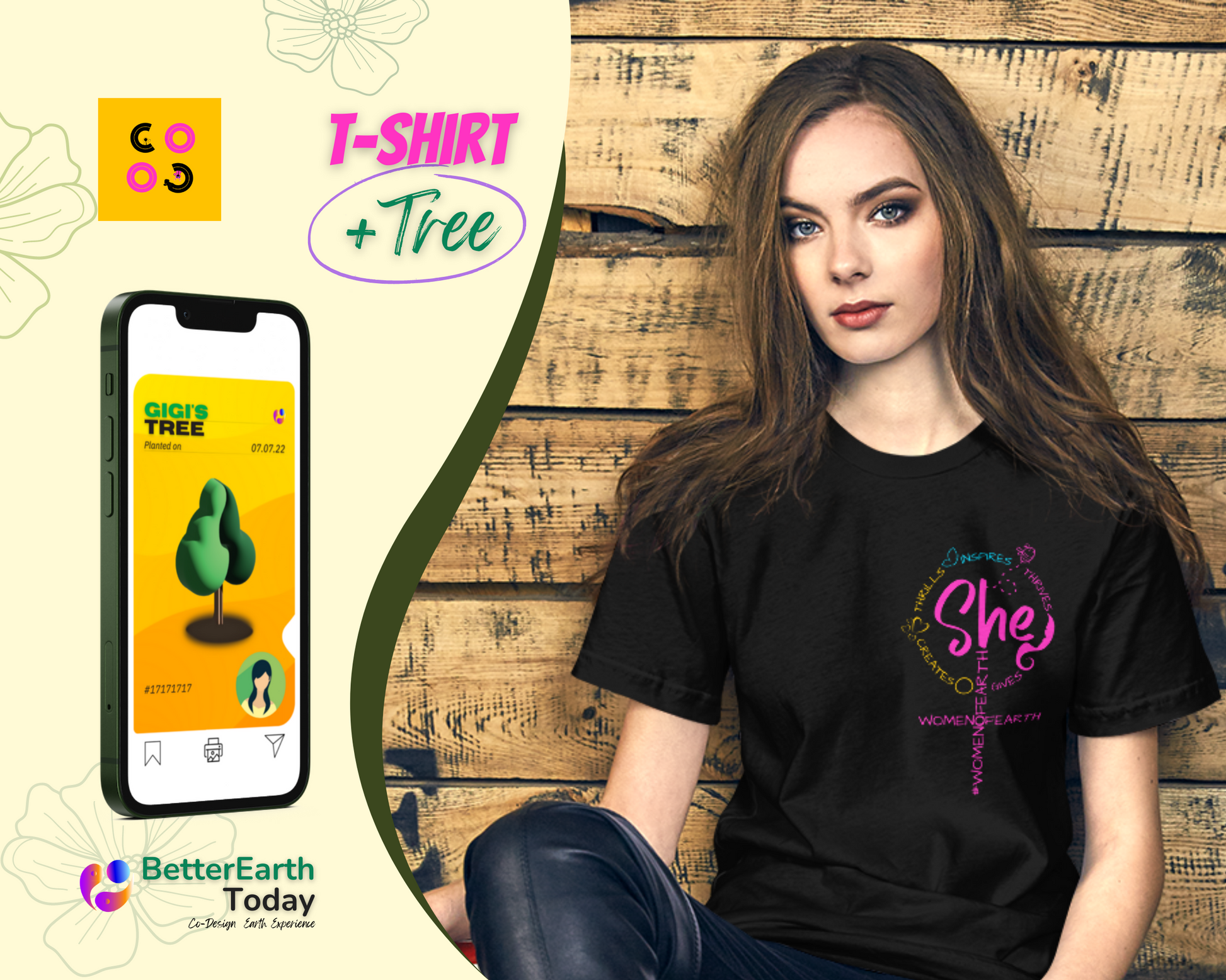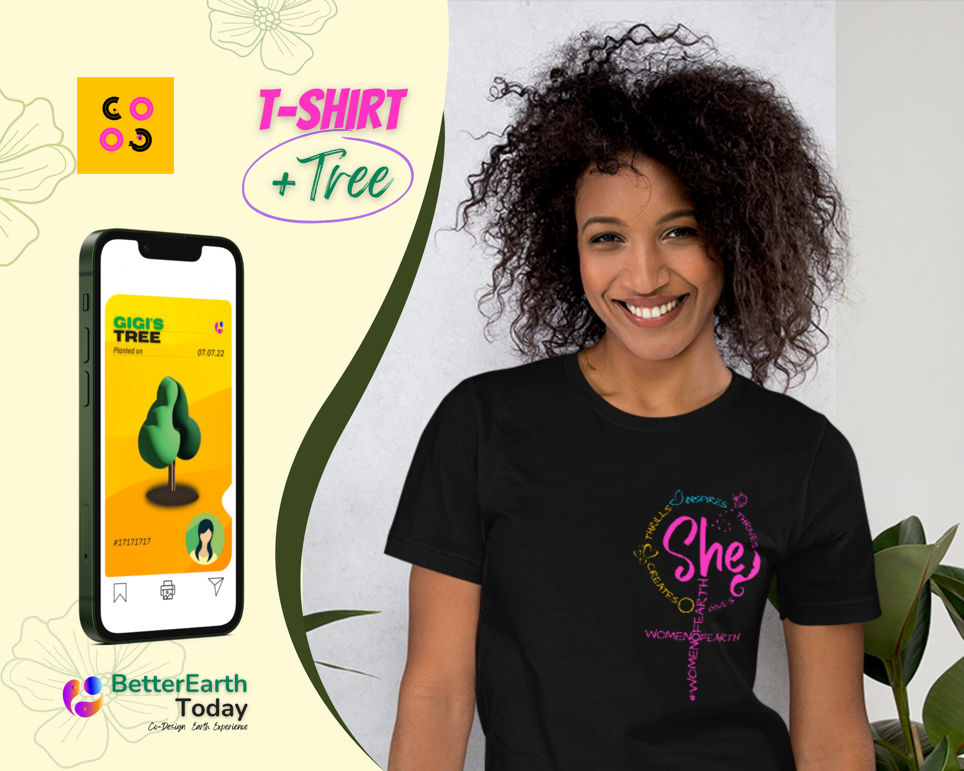 👕 T-Shirt + TreeCard™🌲For every product purchased, at least 1 tree is planted. Let’s grow together. You'll receive a link to a digital TreeCard™, and our tree-plantation partner NGOs will plant the Tree.Furthermore, on the TreeCard™, you'll get the geo-location of the tree and other interesting details.